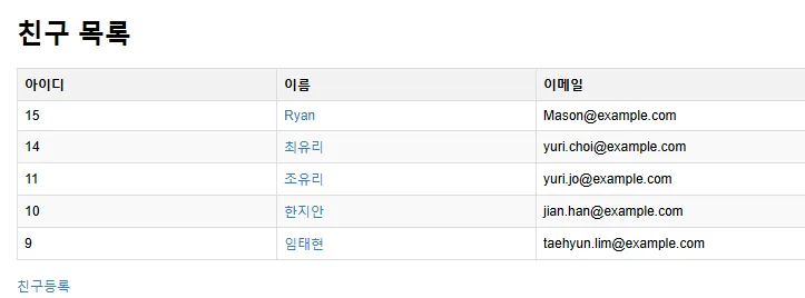 결과를 "friends" 이름으로 모델에 추가 후 뷰에 전달