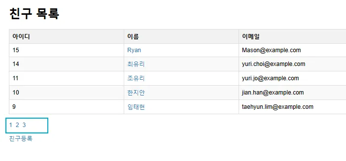 3페이지에 커서를 올렸을때 (localhost:8080/friends/list?page=3) 를 확인