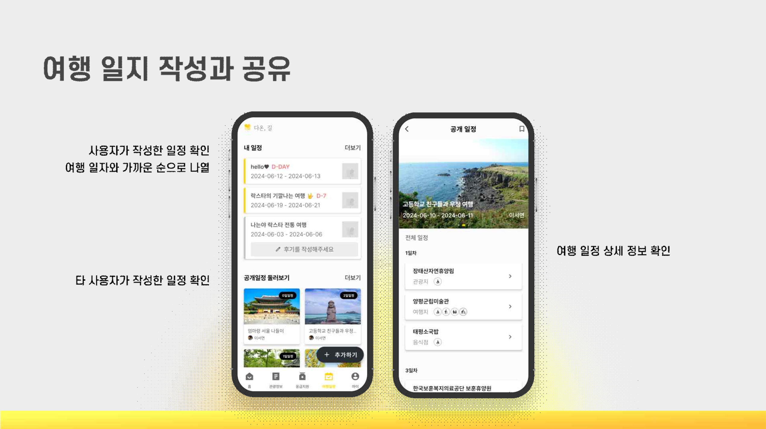 다양한 정보를 통해 안전한 여행 이후에 나의 일지와 다른 사람의 일지를 확인할 수 있어요.